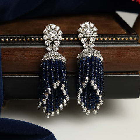 Earring Closure - Push BackKannauti Included - NoBase - Silver & Copper Alloy Height - 6.5 Â CM , Width - 3.3 CM Weight - 49 Grams (24.5 Grams Per Earring) Introducing the Zircon AD Jhumki...