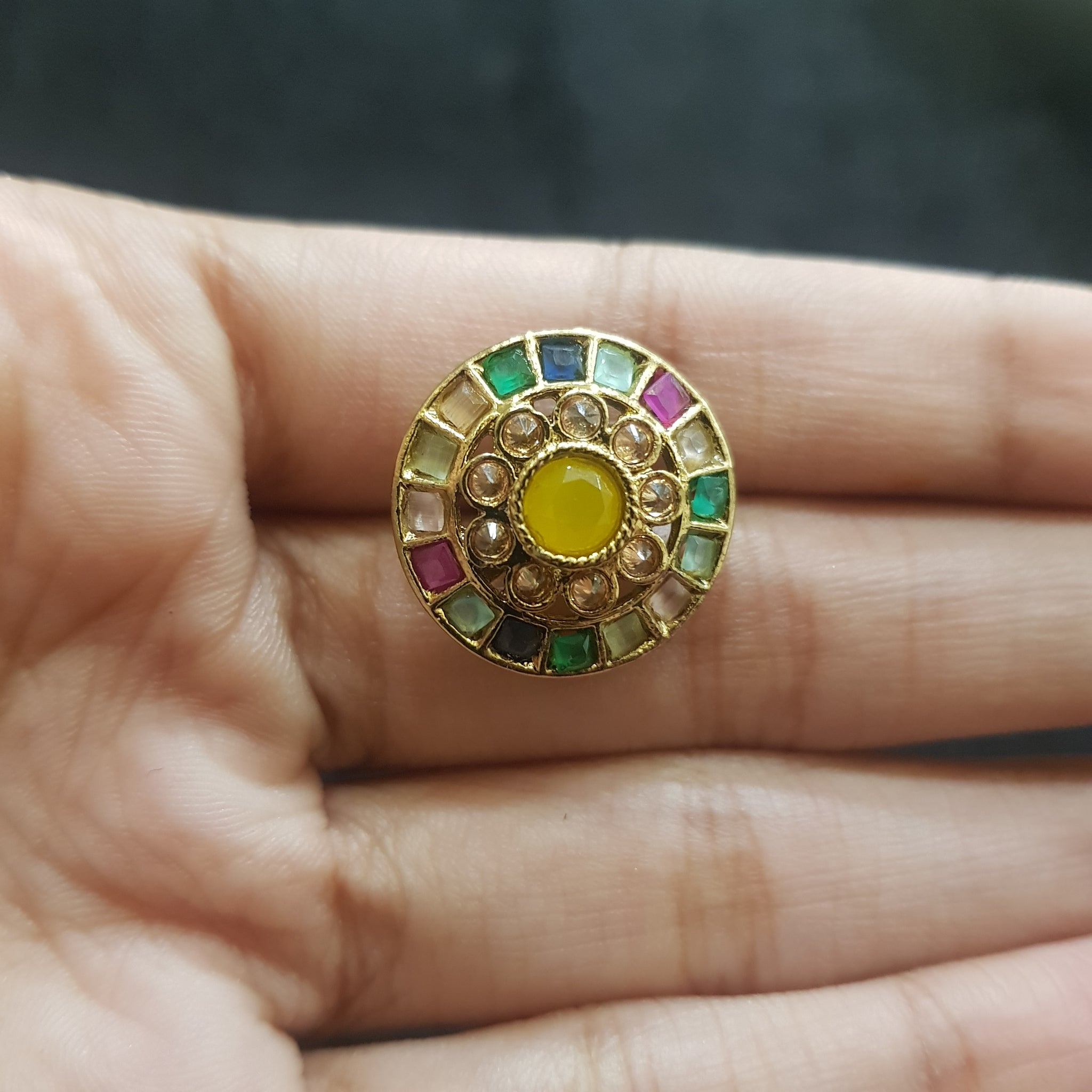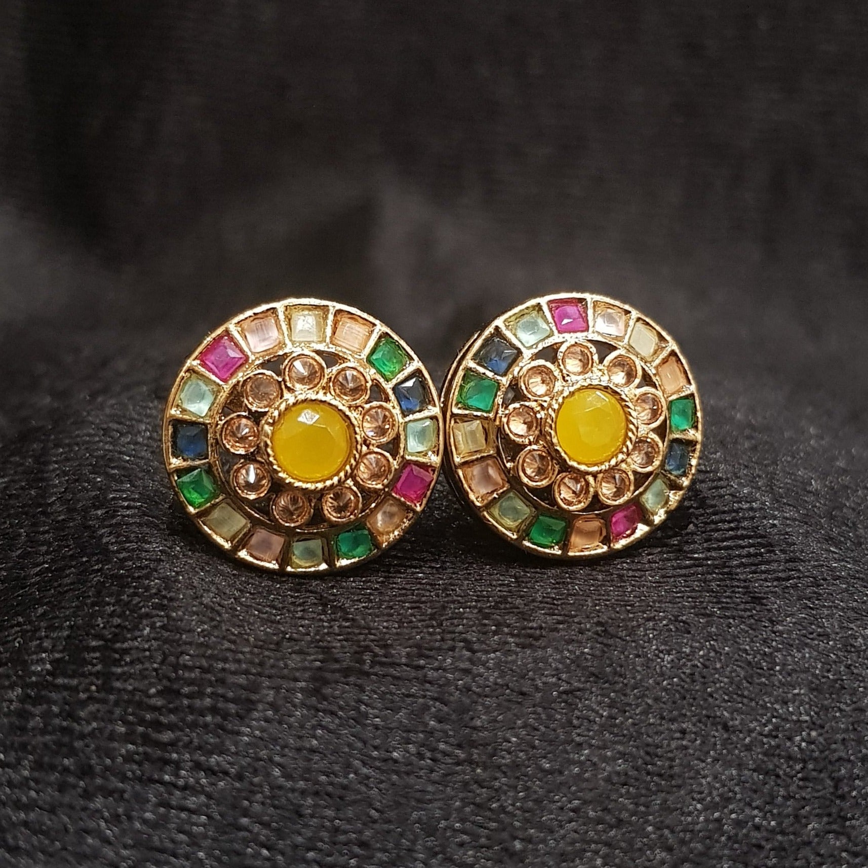 Kannauti Included - NoEarring Closure - Push BackBase - Silver & Copper Alloy The multicolored stones in the earrings you described could be from various materials, such as colorful gemstones like sapphires, rubies, emeralds, or...