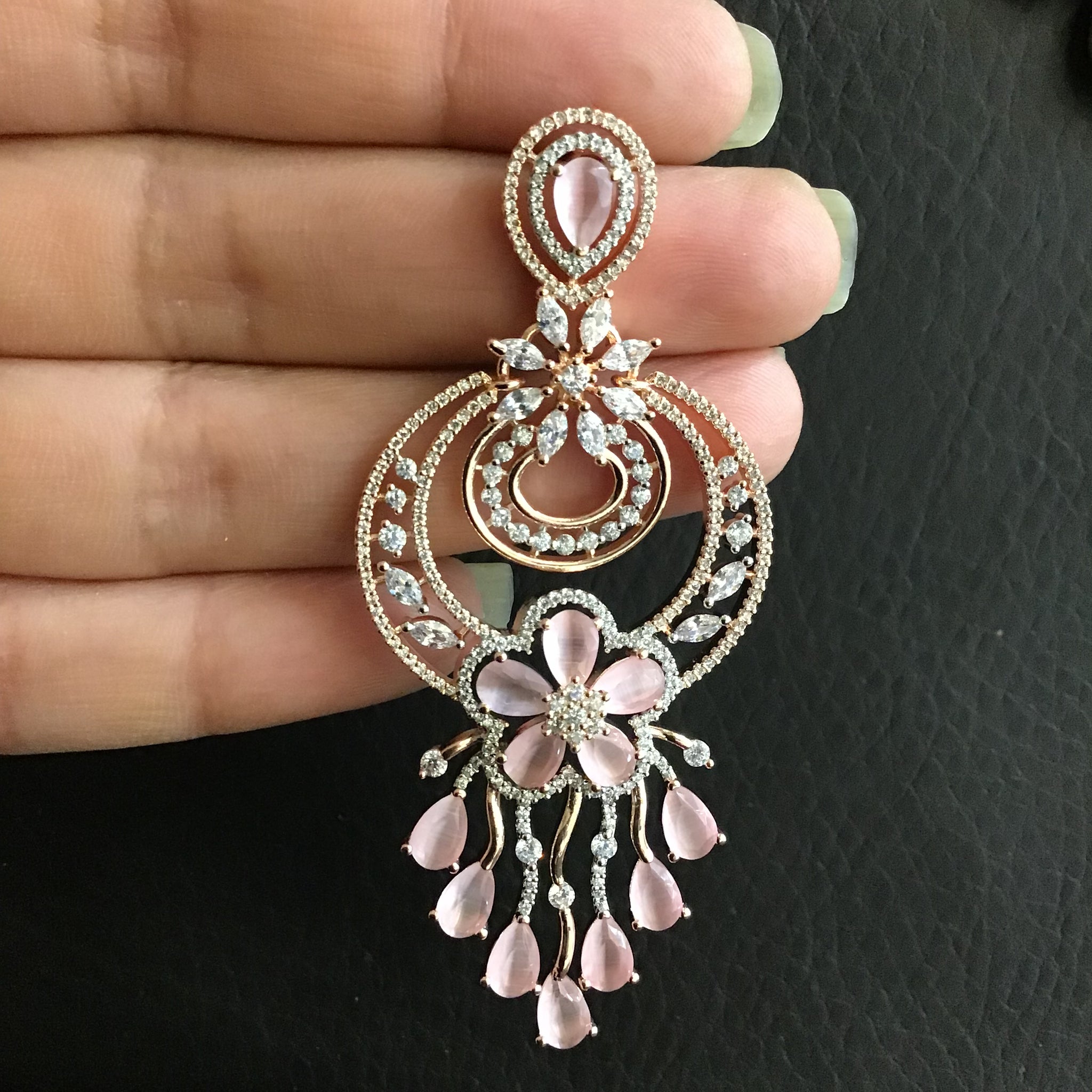 Base - Silver & Copper AlloyEarring Closure - Push Back The exquisite AD Earring, a stunning piece of jewelry that effortlessly combines elegance and style.This earring is designed to effortlessly complement any attire, from casual...