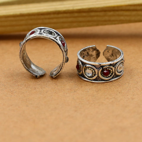 Base - Pure SilverPack contains - 2 Thumb Ring + 2 Toe RingTwo Tone means Silver Plating + Gold Plating