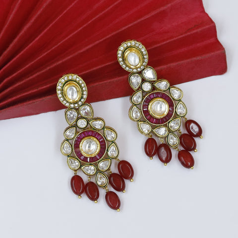 Earring Closure - Push Back Height - 7.2 CM , Width - 3 CM Weight - 42 Grams (21 Grams Per Earring) Base - Silver & Copper Alloy The earring appears to have white and ruby...