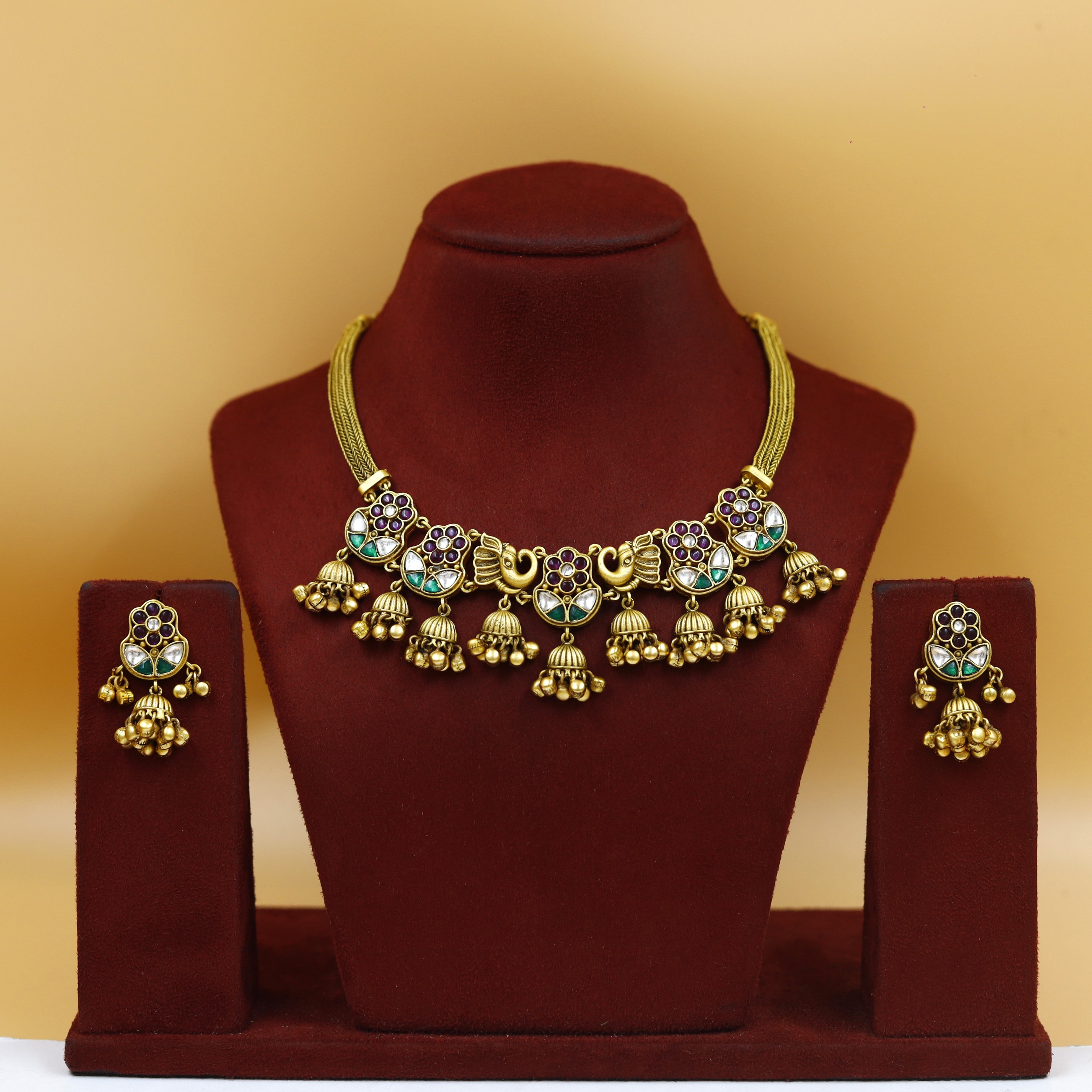Base - Silver & Copper AlloyEarring Closure - Push BackPack contains - 1 Necklace + 2 EarringsNecklace closure - Silk Dori