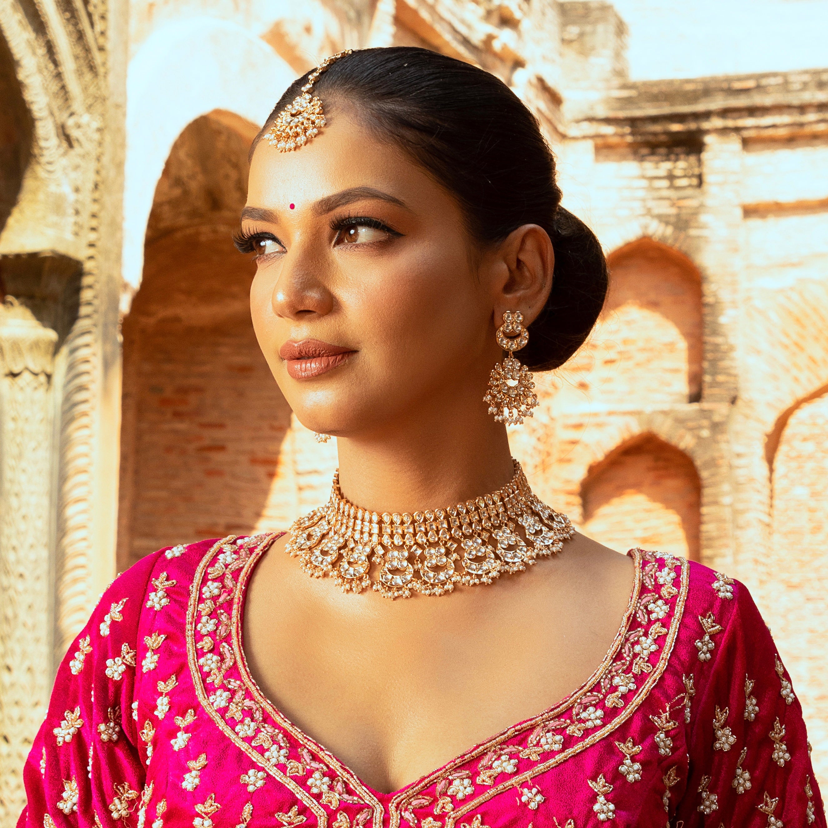 Base - Silver & Copper AlloyEarring Closure - Push BackPack Contains - 1 Necklace+ 2 Earrings + 1 Maang TikkaNecklace Closure - Silk Dori