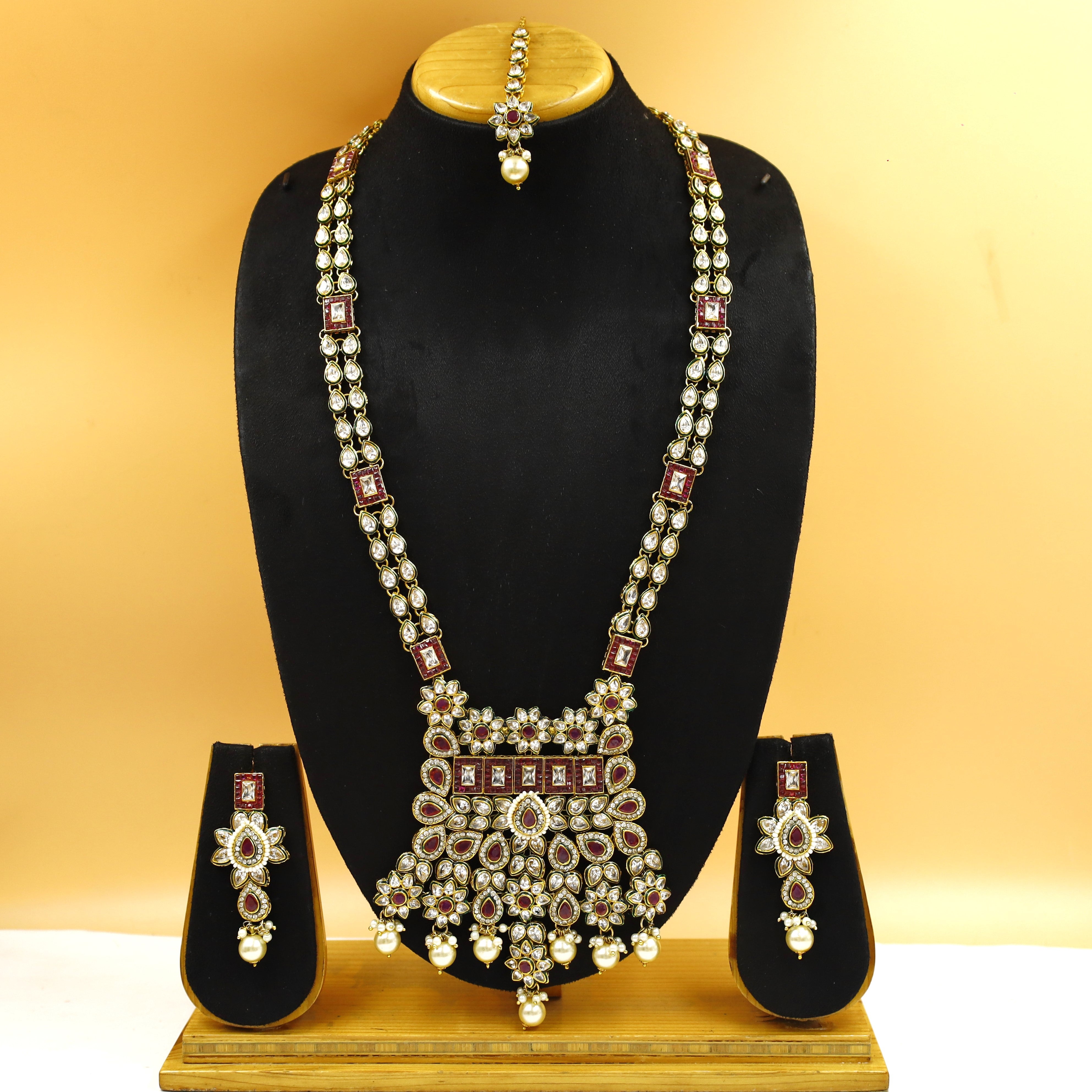 Presenting our extraordinary Polki Long Necklace, a masterpiece of intricate artistry that will leave you enchanted. This exquisite piece of jewelry is a testament to the skilled craftsmanship and attention to detail that goes into its creation, making it a treasure to cherish and admire.