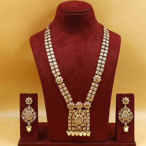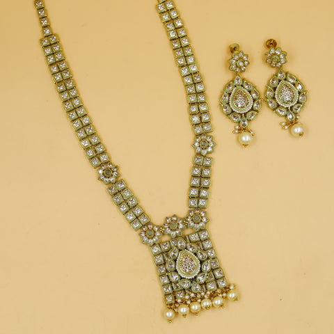 Stone -Â Kundan, Pearl Necklace Closure -Â Silk Dori Earring Closure - Push Back Base - Silver & Copper Alloy Set Contains - 1 Necklace + 2 Earrings Earring: Height- 10.5 cm , Width- 3 cm Earring...