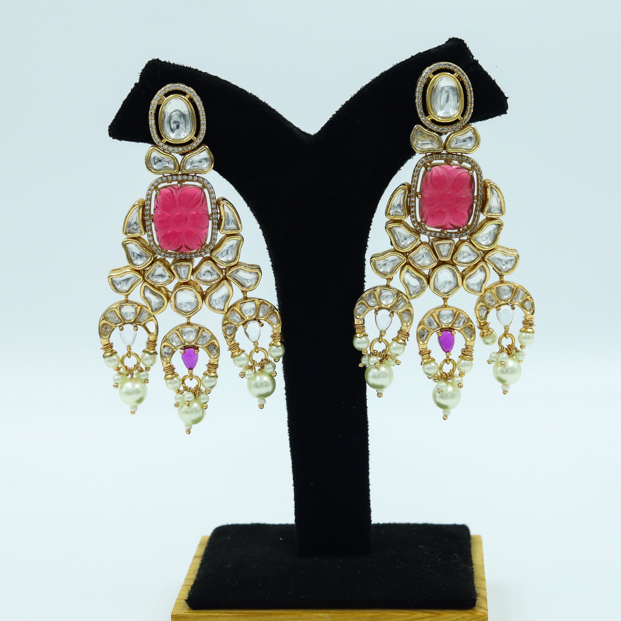 Set contains - 1 Necklace + 2 EarringsNecklace Closure - Silk DoriEarring Closure - Push BackBase - Silver & Copper Alloy Earring: Height- 8 cm , Width- 4 cm Earring Weight - 72 gram (...