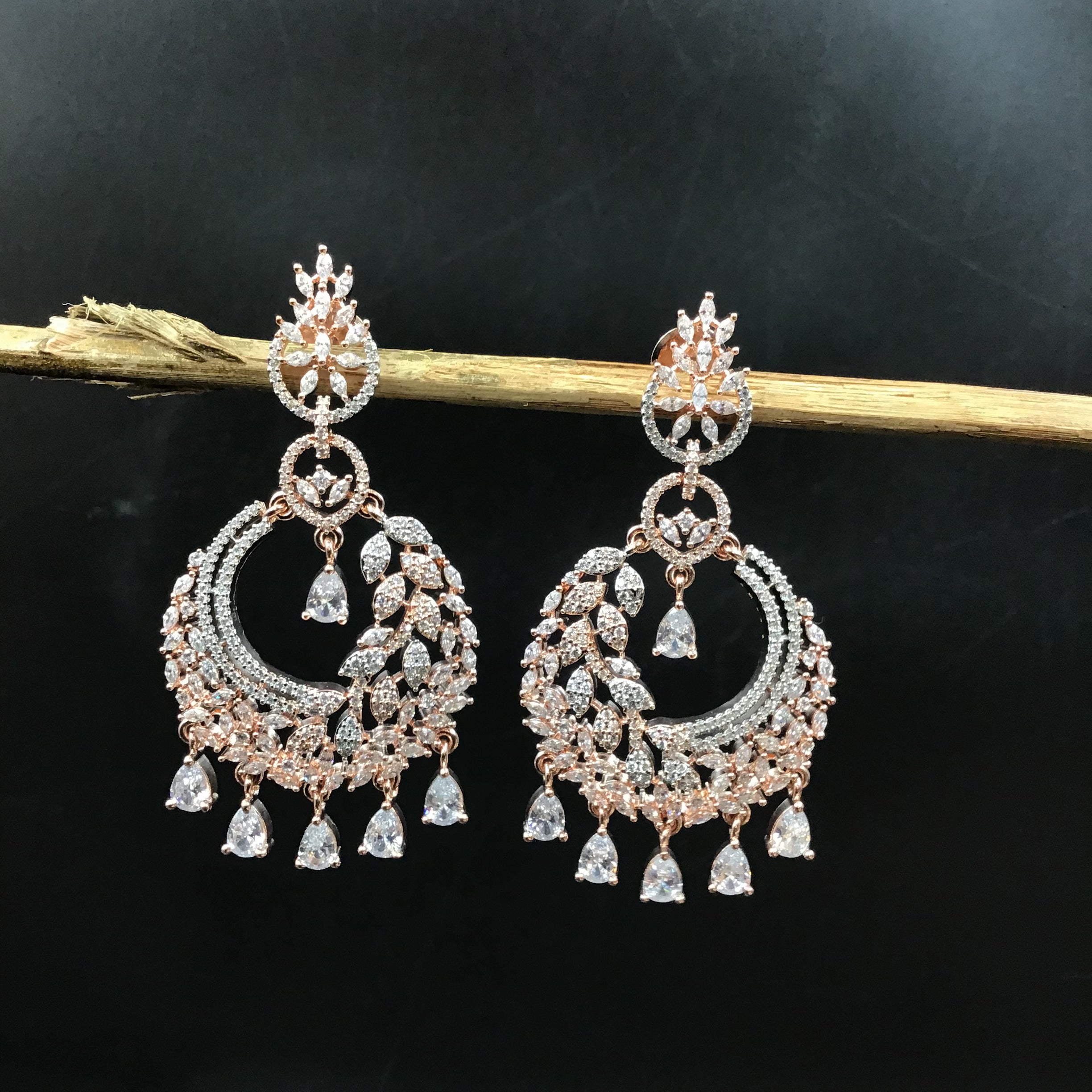 Danglers Zircon/AD with round shape and rose gold polish is designed to be comfortable to wear all day long, despite their size and statement-making design. They are the perfect accessory for anyone looking to add a touch of romance and sophistication to their jewelry collection.