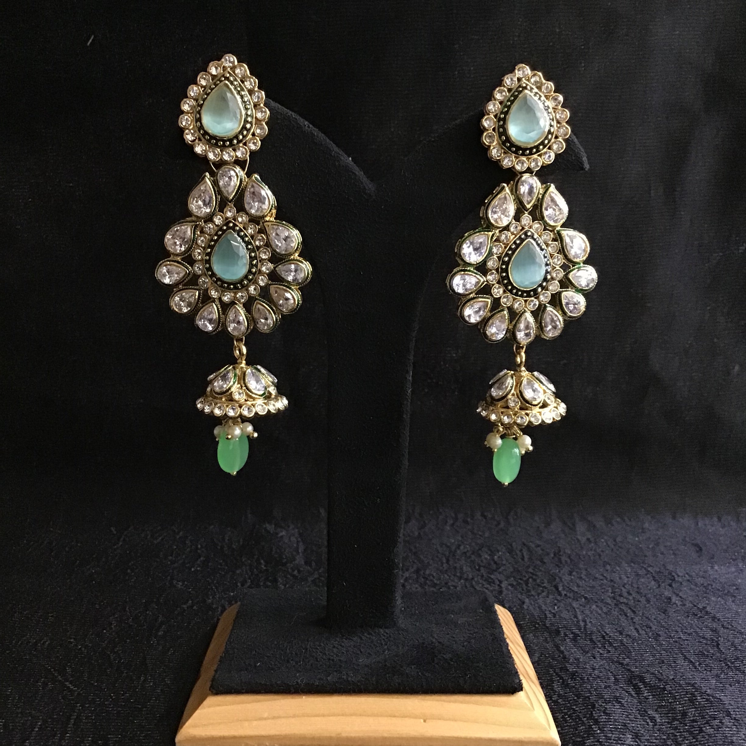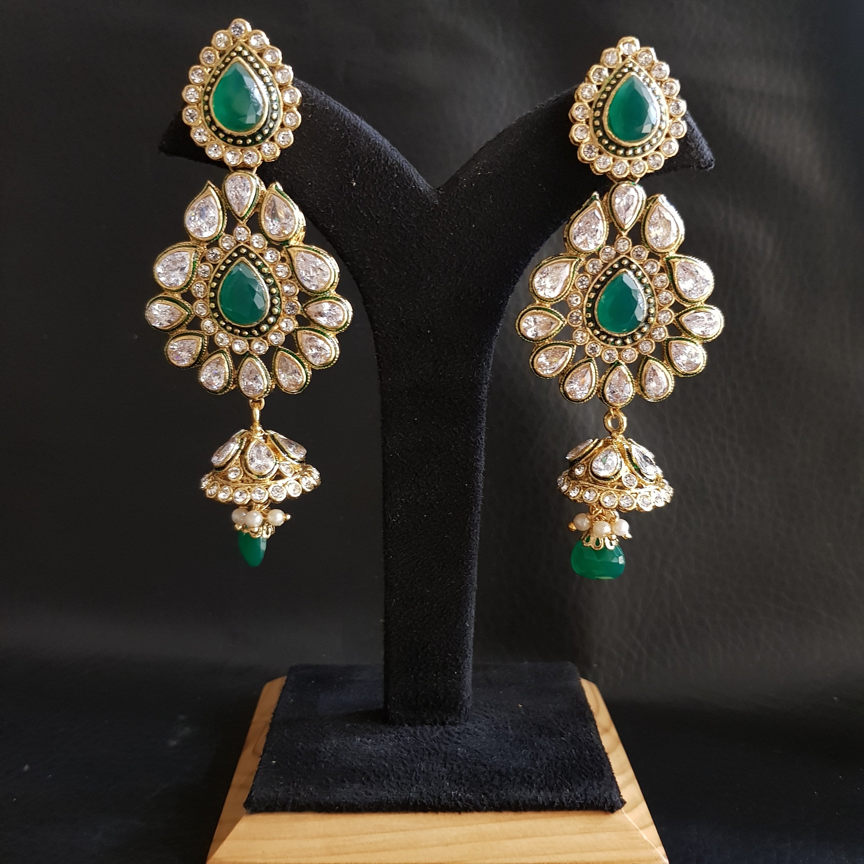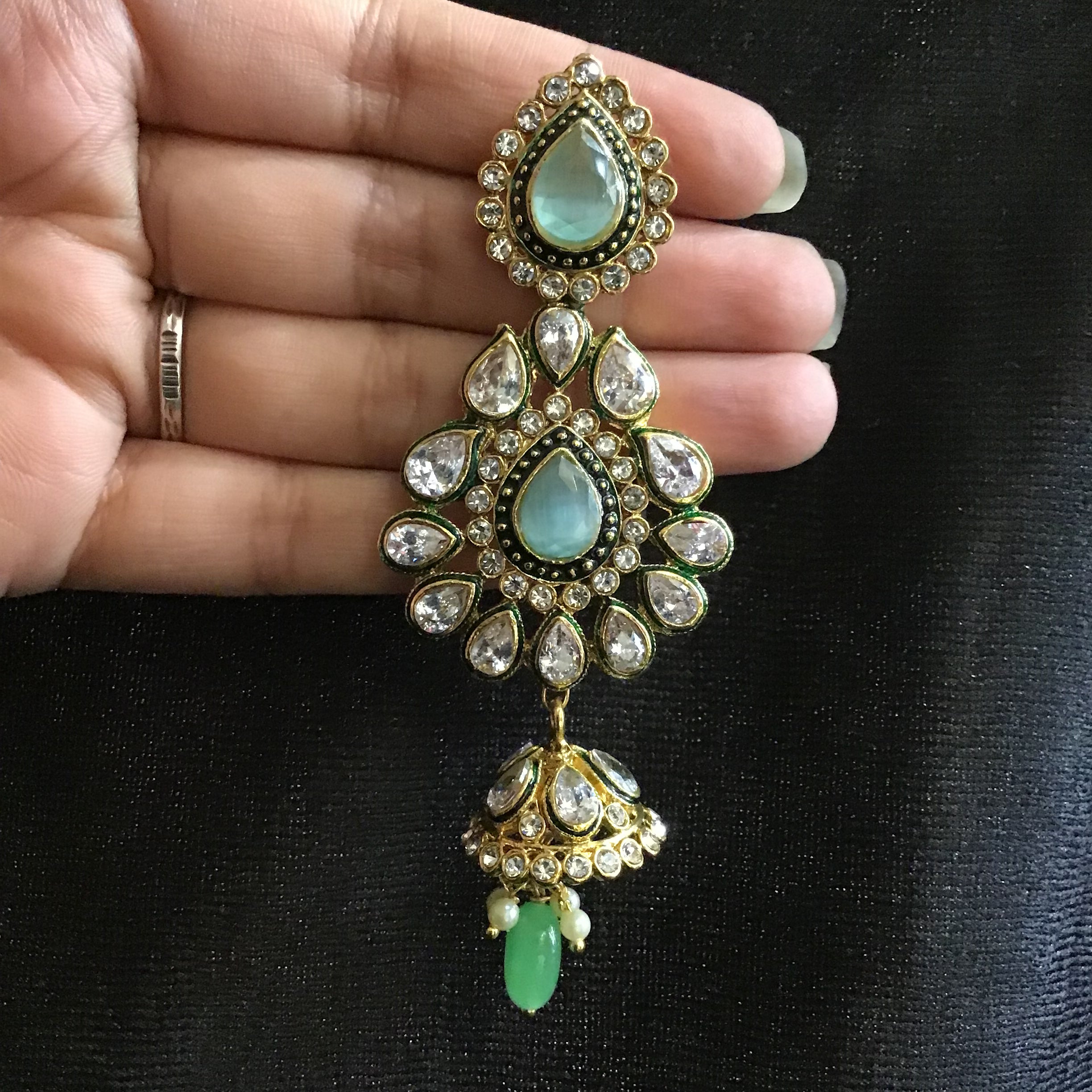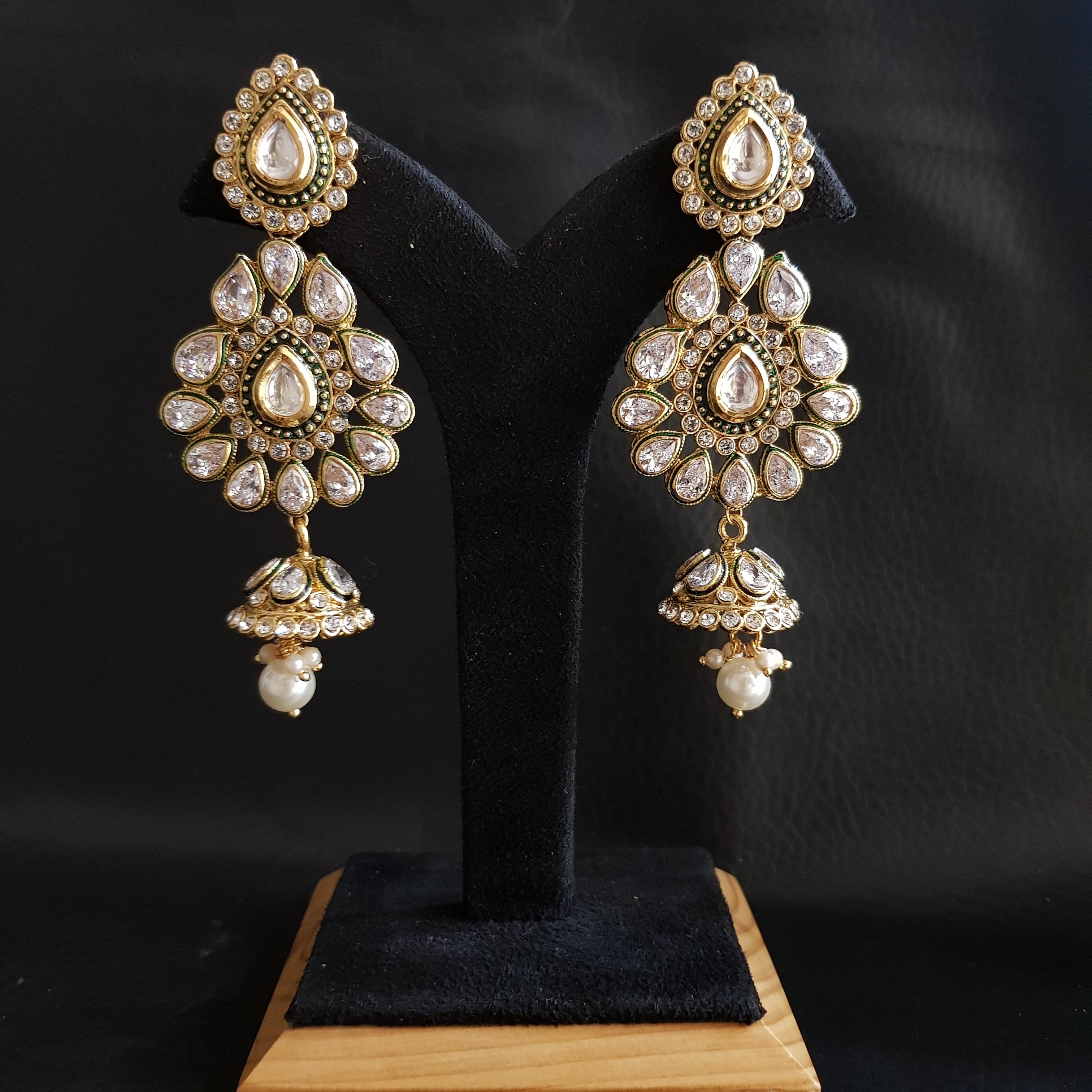 Our Polki Jhumki Earrings, a fusion of traditional charm and contemporary style. Adorned with exquisite single beads, these earrings are a statement of elegance. The stunning Polki centerpiece adds a touch of sophistication, while the jhumki design adds movement and grace. Elevate your look with these timeless earrings that combine tradition and trend seamlessly.