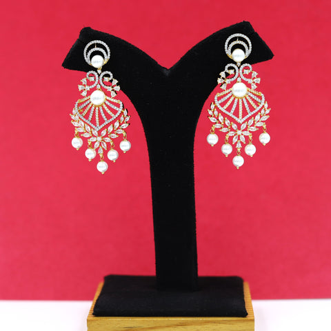 Earring Closure - Push BackBase - Silver & Copper Alloy Height-7.5 cm , Width- 3.5 cm Weight-32 gm( 16 gm Each Earring) Zircon and Off-White Pearl Earrings with Rose Gold Polish and Prong-Set Stones -...
