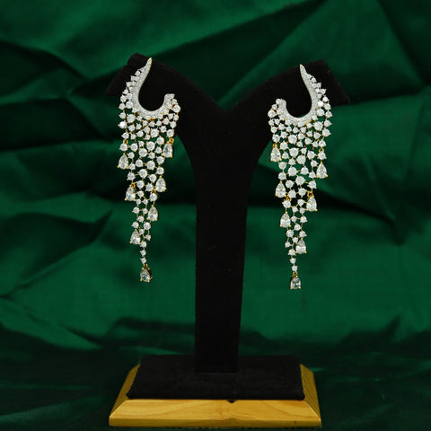 Type - DanglersStone - CZ ( American Diamond)Polish - Rose GoldEarring Closure - Push BackKannauti Included - NoBase - Silver & Copper Alloy Height - 8.7 CM , Width - 2 CM Weight - 26.22 Grams...