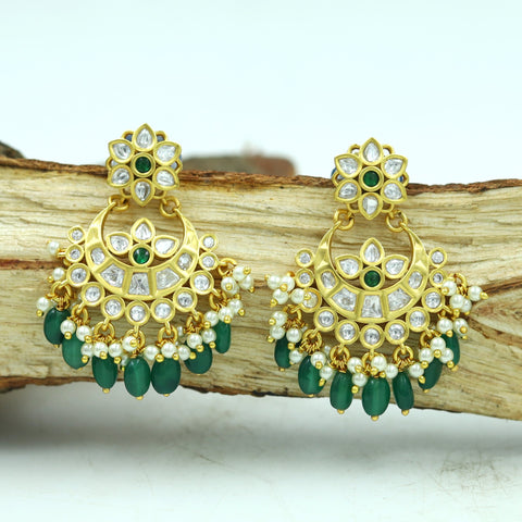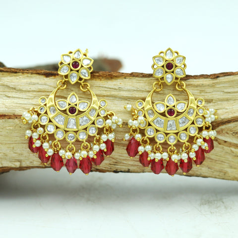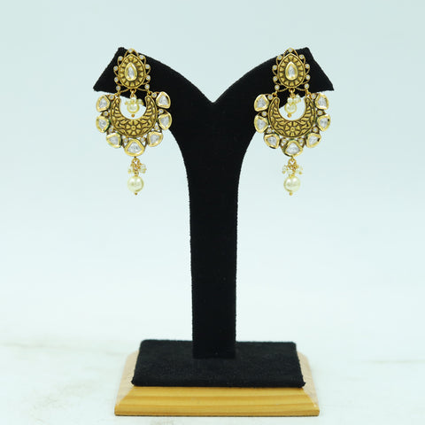 Base - Silver & Copper Alloy Earring Closure - Push Back Height - 7 CM, Width - 3.5 CM Weight - 65 Grams (32.5 Gram for Per Earring) Introducing our exquisite Kundan Jhumki with white...