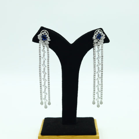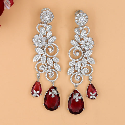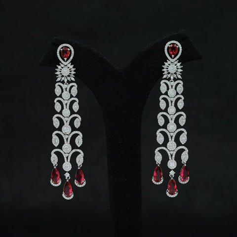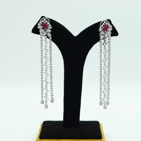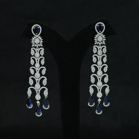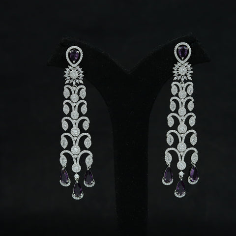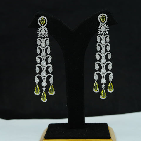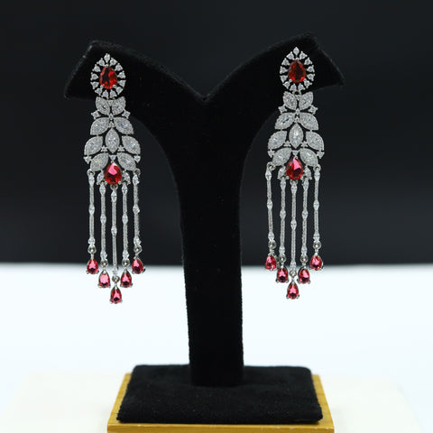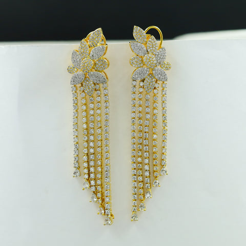 Base - Silver & Copper AlloyEarring Closure - Push Back Height - 10 CM, Width - 1.5 CM Weight - 25 Grams (12.5 Gram for Per Earring) AD zircon with gold polish danglers with high-quality...