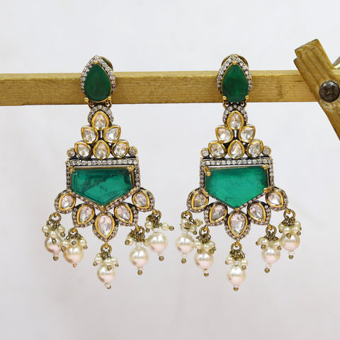 Earring Closure - Push BackBase - Silver & Copper Alloy Height - 7 CM, Width - 3 CM Weight - 23 Grams (11.5 Gram for Per Earring) The exquisite AD Earring, a true masterpiece of...