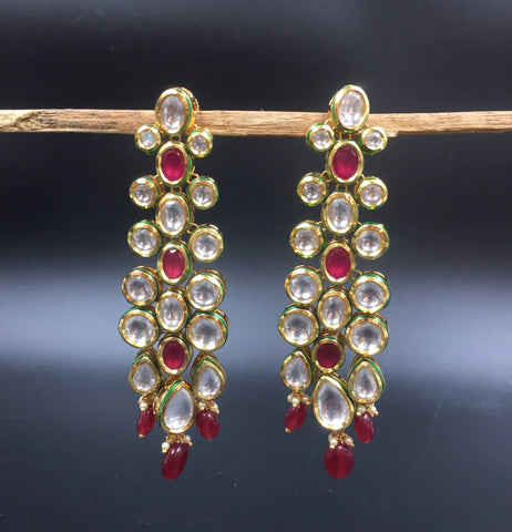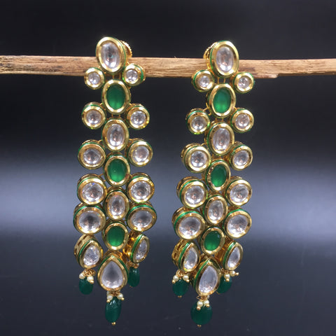 Base - Silver & Copper Alloy Earring Closure - Push Back Height - 9.5 CM, Width - 2.5 CM Weight - 56 Grams (28 Gram for Per Earring) Our exquisite Kundan earrings, designed to captivate...