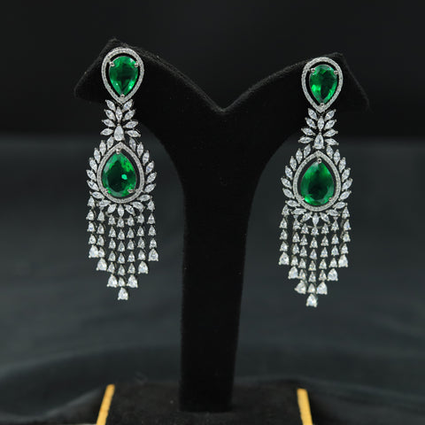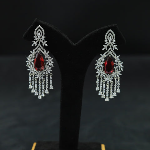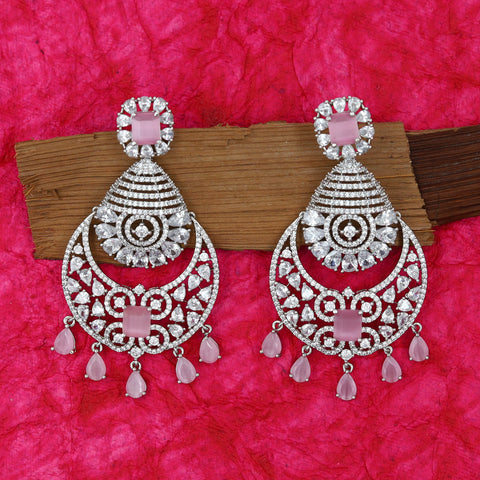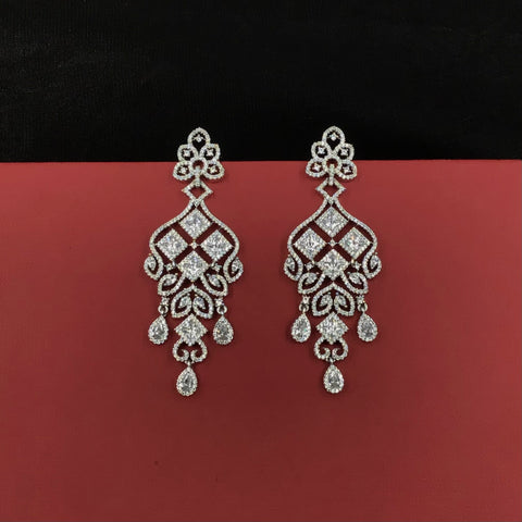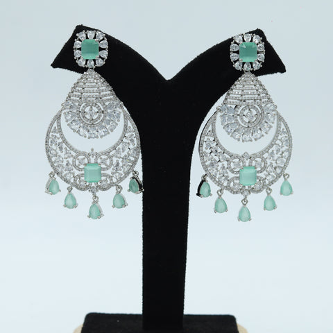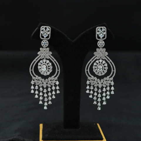Base - Silver & Copper AlloyEarring Closure - Push Back Height - 8 CM, Width - 4 CM Weight - 39 Grams (19.5 Gram for Per Earring) The exquisite AD Earring in a mesmerising Silver...