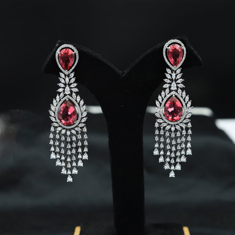 Base - Silver & Copper AlloyEarring Closure - Push Back Height - 8 CM, Width - 3 CM Weight - 24 Grams (12 Gram for Per Earring) Our stunning AD Earrings, the perfect combination of...