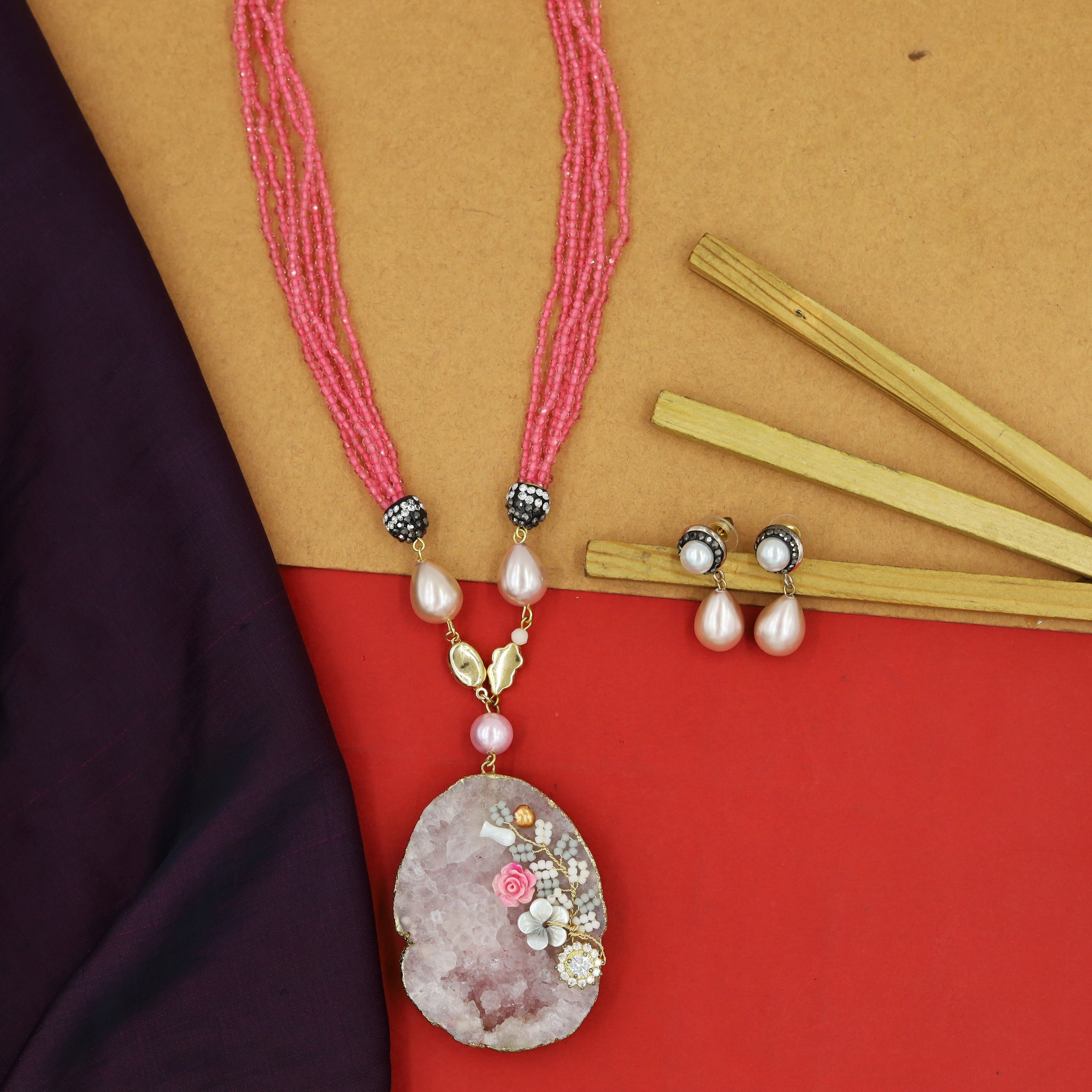 Set Contains - 1 Pendant + 2 EarringsPendant Closure - Chain HookEarring Closure - Push BackBase - Silver & Copper Alloy