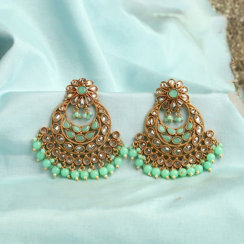 Earring Closure - Push Back Base - Silver & Copper Alloy Height - 8 CM, Width - 5 CM Weight - 48 Grams (24 Gram for Per Earring) Introducing our exquisite Gold Look Chandbali, adorned...
