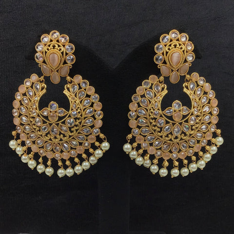 Stone - Peach With PearlEarring Closure - Push BackKannauti Included - NoBase - Silver & Copper Alloy Earrings Height - 9 CM, Width - 4.9 CM Earrings Weight  - 60 Grams ( 30gm per earrings)...