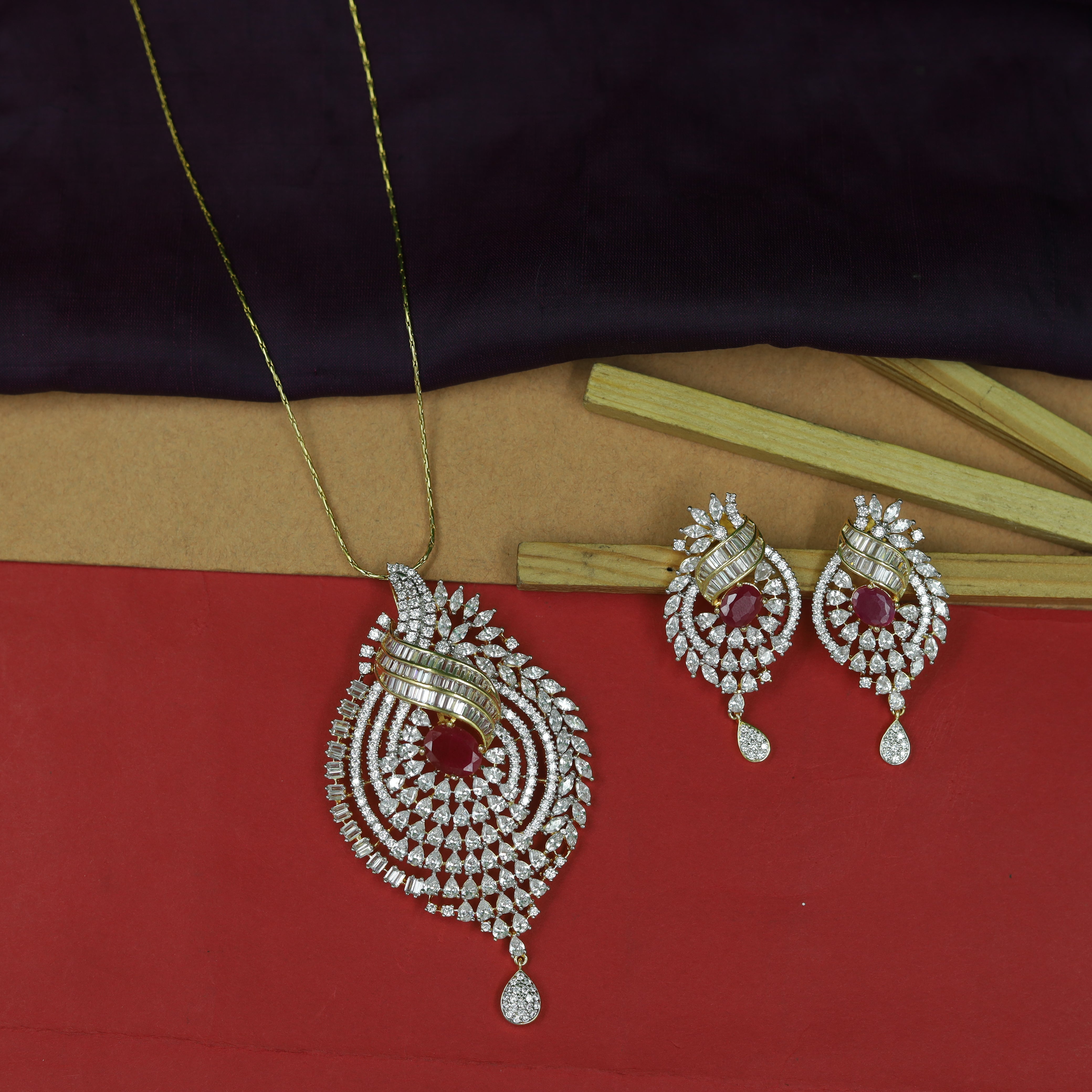 Base - Silver & Copper AlloyPack contains - 1 Pendant without chain + 2 EarringsEarring Closure - Push BackNote - Chain in the image is for only reference purpose.