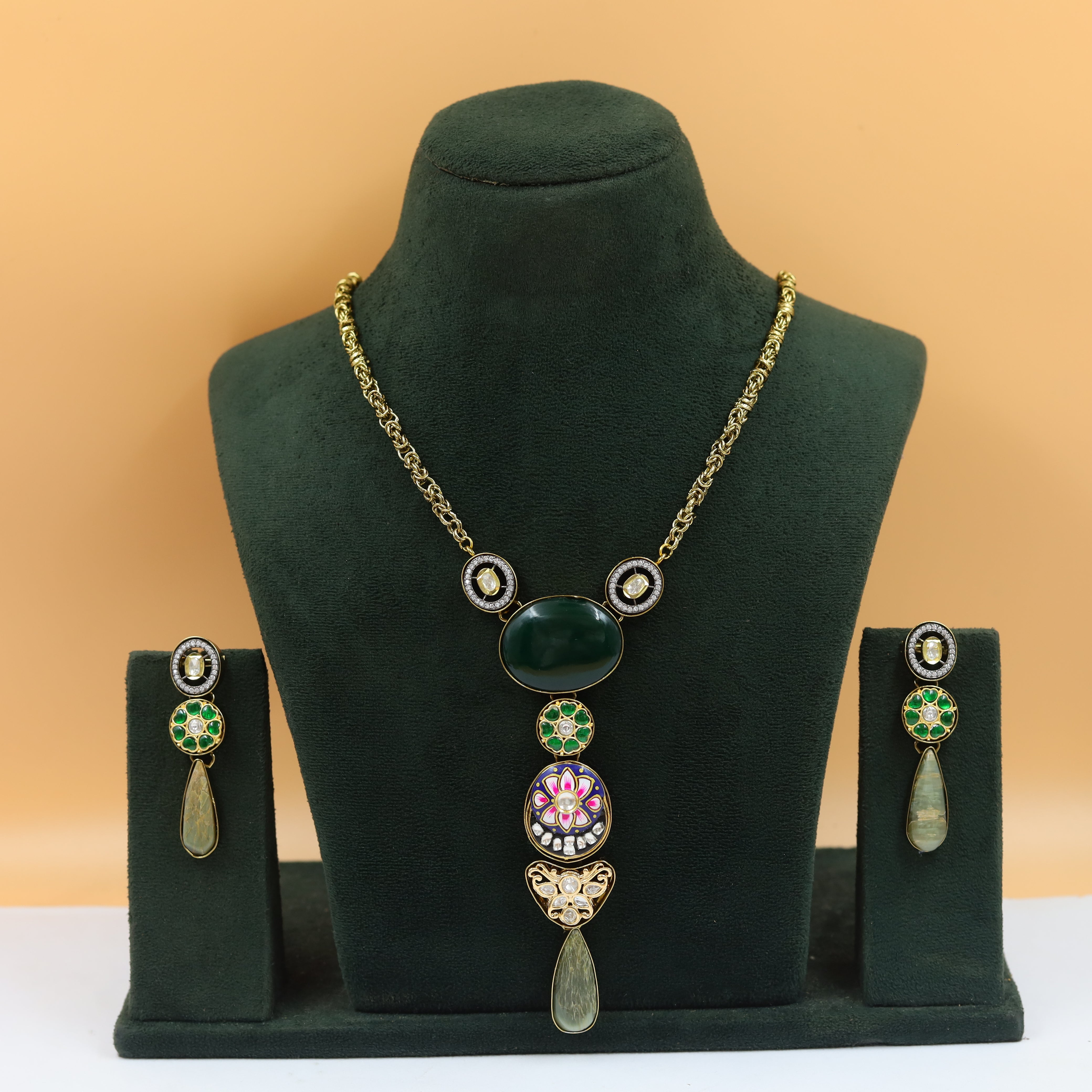 Base - Silver & Copper AlloyPendant Closure - Chain HookPack contains - 1 Pendant + 2 EarringEarring Closure - Push BackTotal Length - 34 Inch