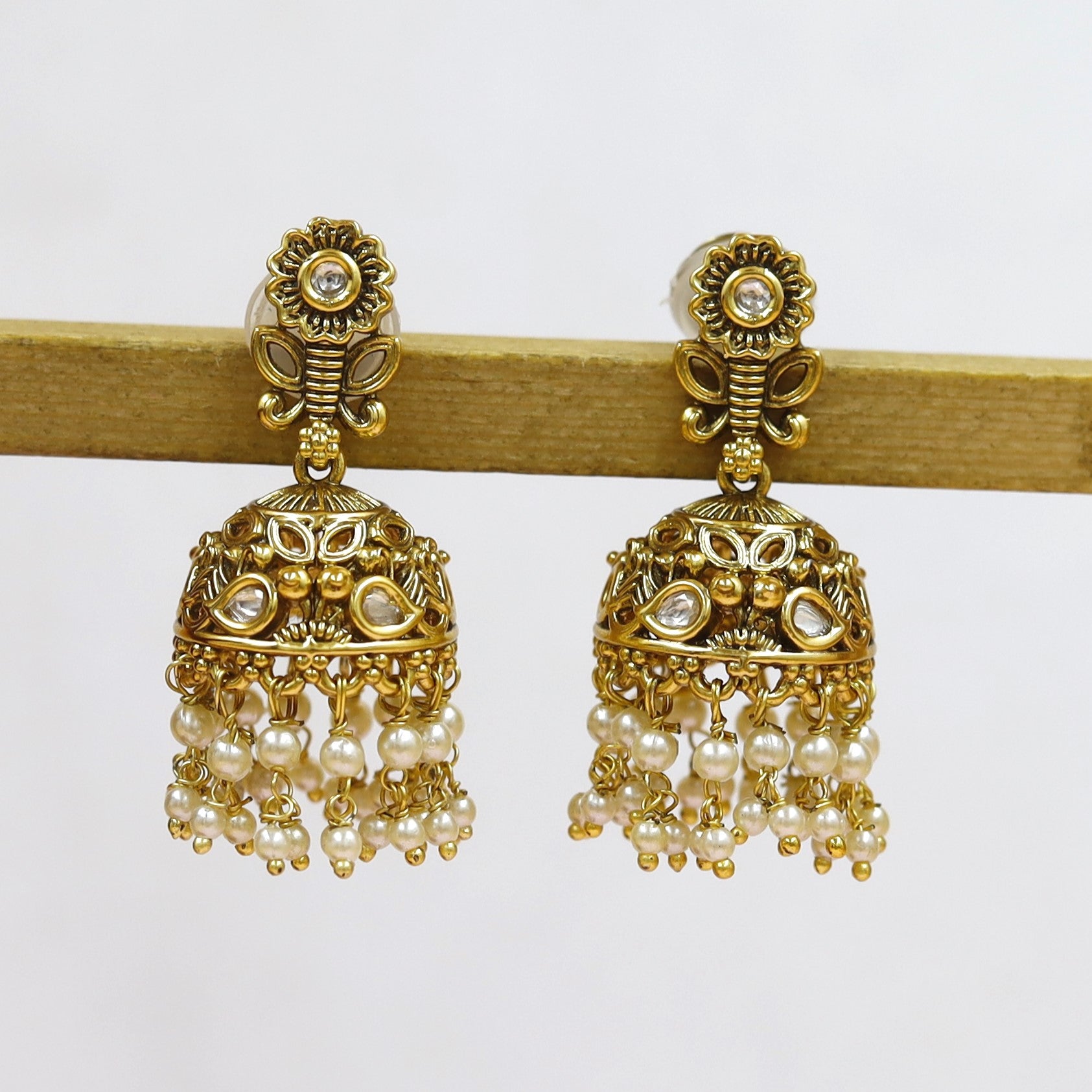 White / Antique Gold / Jhumki - Rs. 1,600.00