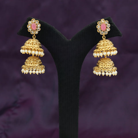 Stone -Â Pearl Earring Closure - Push Back Kannauti Included - No Base - Silver & Copper Alloy Height - 5 CM Â , Width - 2CM Weight - 22Â Grams (11 Grams Per Earring) The gold-look...