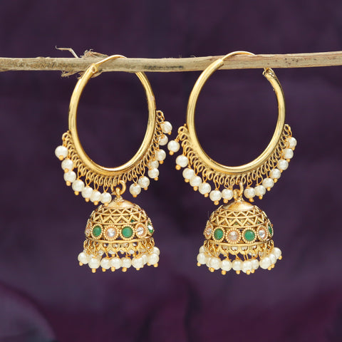 Stone - Pearl Earring Closure - Push Back Kannauti Included - No Base - Silver & Copper Alloy Height - 3.5 CM , Width - 2 CM Weight - 14Grams (7 Grams Per Earring)  Gold...