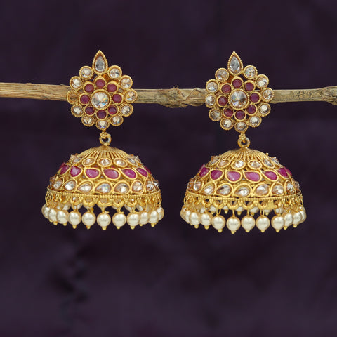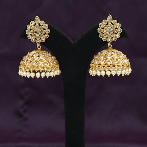 Earring Closure - Push BackBase - Silver & Copper Alloy Height-5.5 cm, Width-4 cm Weight-42gm(21gm Each Earring) The exquisite Antique Polki Jhumki, designed to elevate your style quotient with its unique charm and elegance. These...