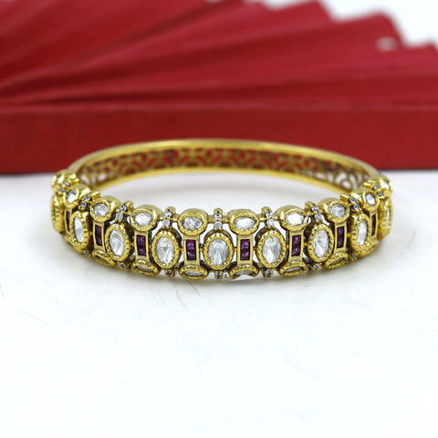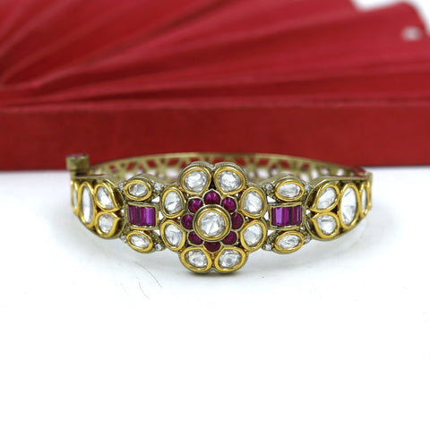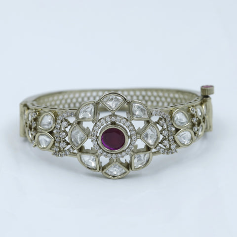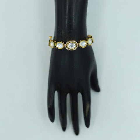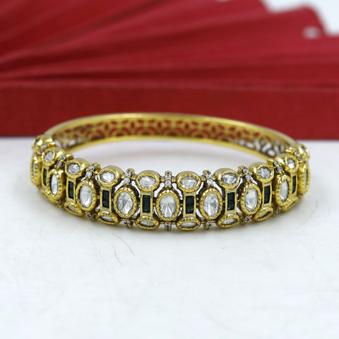 Base - Silver & Copper AlloyPolish - Gold Our exquisite Kundan Openable Bracelet – a fusion of convenience and elegance. With its captivating design and openable clasp, wearing and removing this bracelet is a breeze....