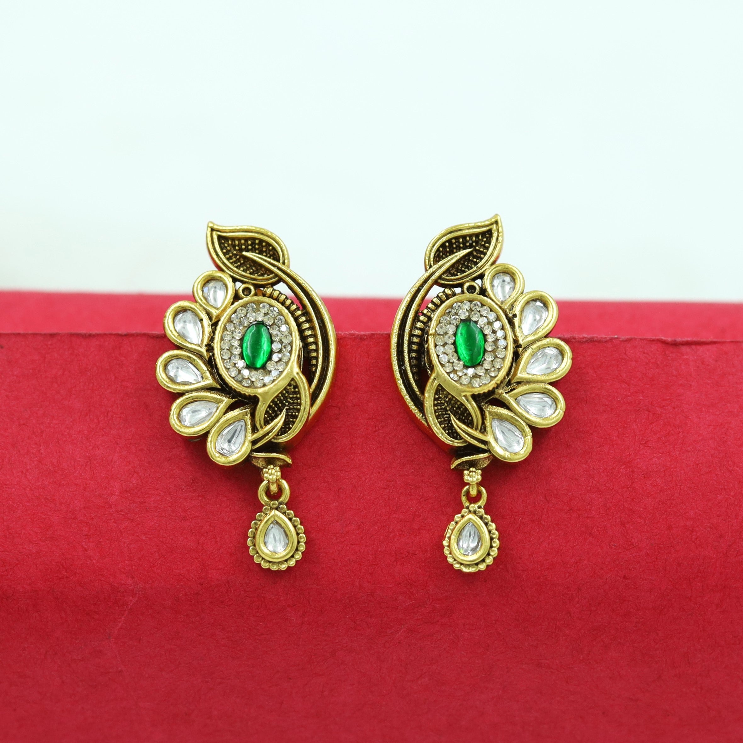 Green / Antique Gold / Light Earring - Rs. 1,500.00