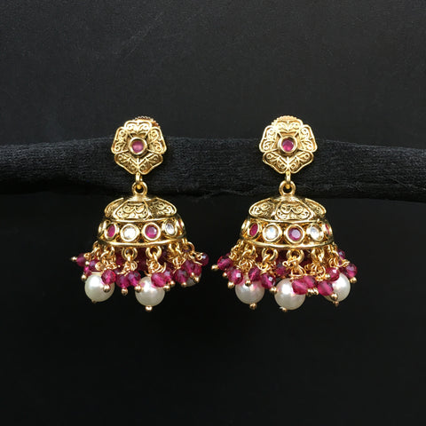 Earring Closure - Push BackBase - Silver & Copper Alloy Height - 3.5 CM, Width - 2.5 CM Weight - 24 Grams (12 Gram for Per Earring) Our Kundan Jhumki Earrings, a true embodiment of...