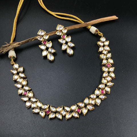 Stone - Kundan, Ruby, CZ (American Diamond)Necklace Closure - Silk DoriEarring Closure - Push BackBase - Silver & Copper AlloySet Contains - 1 Necklace + 2 Earrings Earring: Height- 8 cm , Width- 3.2 cm...