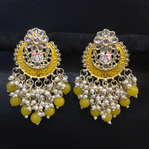 Earring Closure - Push BackKannauti Included - NoBase - Silver & Copper Alloy The versatility of these Kundan Meenakari Chandbali with Small and Big Pearls earrings means that they can be worn with a range...