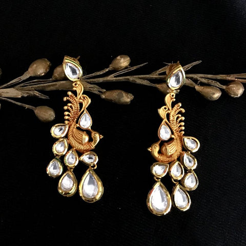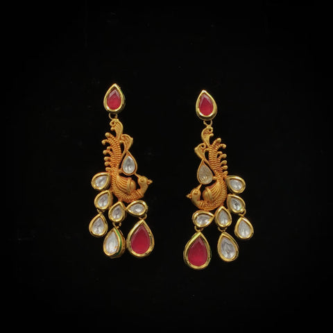 Base - Silver & Copper Alloy Earring Closure - Push Back Height - 5.8 CM , Width - 1.5 CM Weight - 18 Grams(9 Grams Each Earring) Introducing our exquisite Kundan Earrings featuring a mesmerizing peacock...
