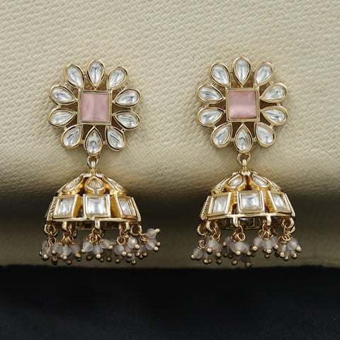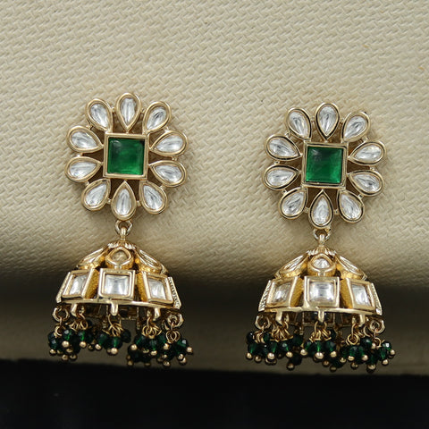 Base - Silver & Copper Alloy Earring Closure - Push Back Our breathtaking Kundan Jhumki earrings, a true embodiment of beauty and elegance. These exquisite earrings feature a generous display of big Kundan stones, meticulously...