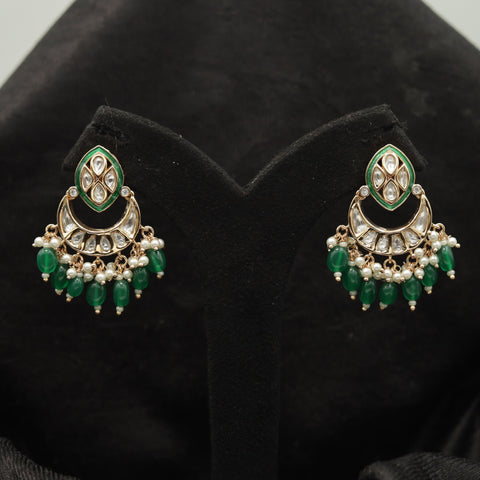 Base - Silver & Copper AlloyEarring Closure - Push Back Height - 4.5 CM, Width - 2.5 CM Weight - 18 Grams (9 Gram for Per Earring The enchanting beauty of our Kundan Chandbali -...