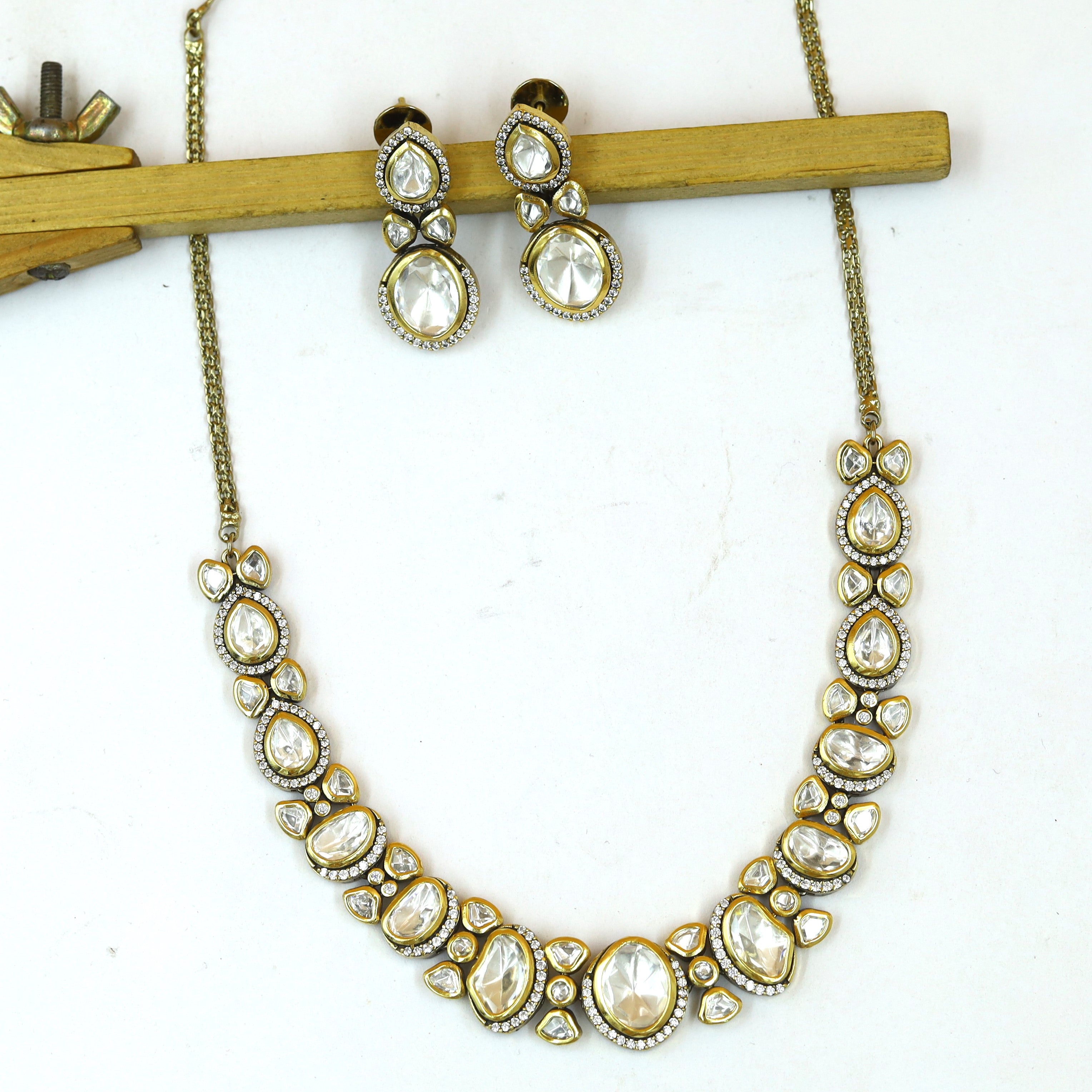 Base - Silver & Copper AlloyNecklace Closure - Chain HookPack contains - 1 Necklace + 2 EarringEarring Closure - Push Back