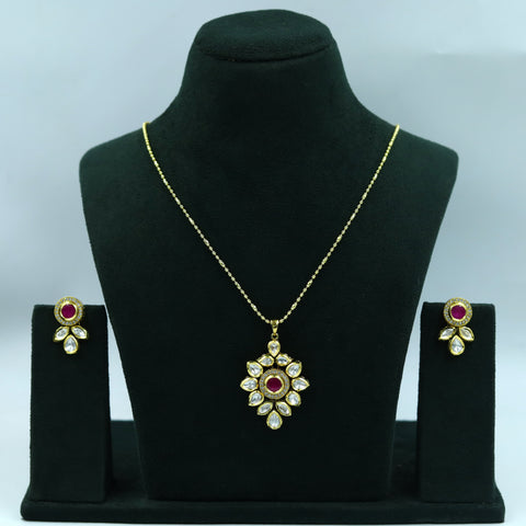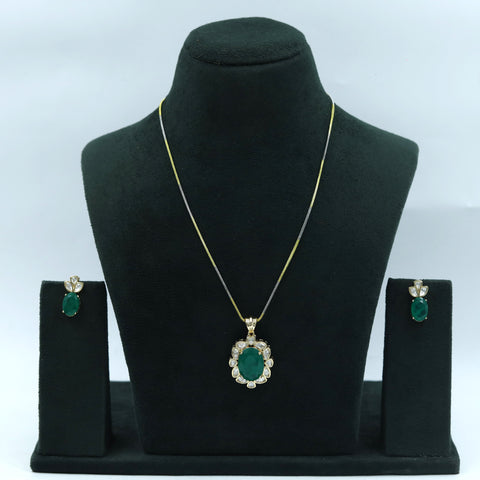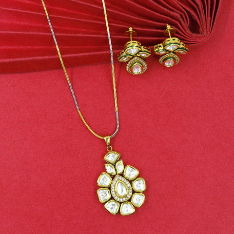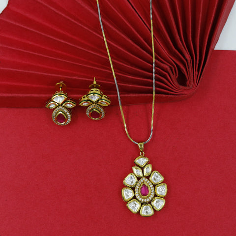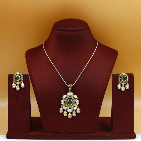 Base - Silver & Copper AlloySet Contains - 1 Pendant + 2 Earrings Earring: Height - 2.8 cm , Width - 1.8 cm Earring Weight - 11 gram ( 5.5 gm each earring)
