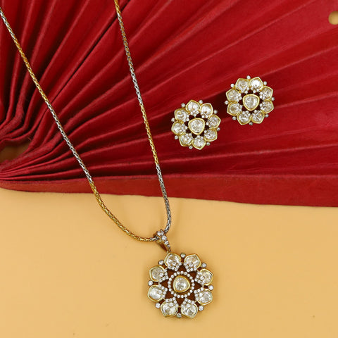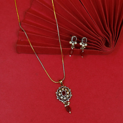 Base - Silver & Copper AlloyPack contains - 1 Pendant + 2 EarringsEarring Closure - Push BackChain Included - No