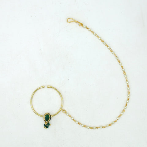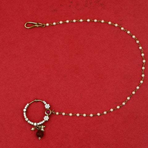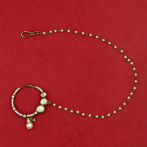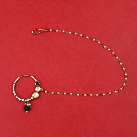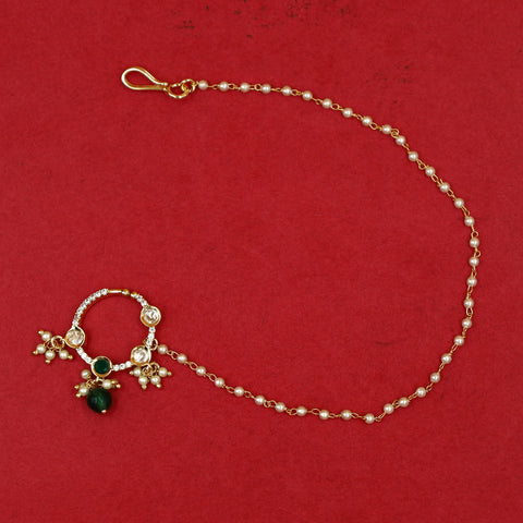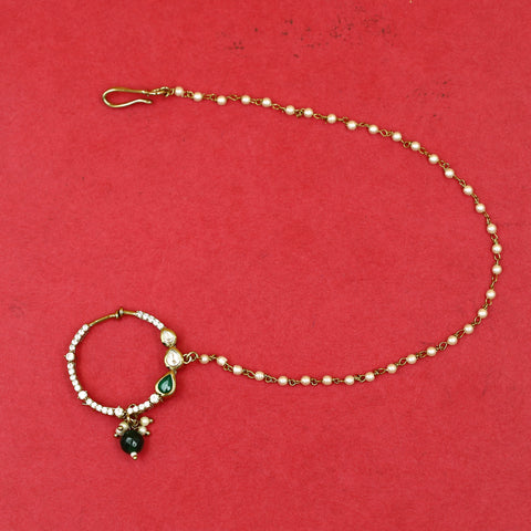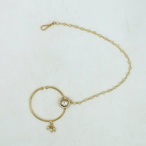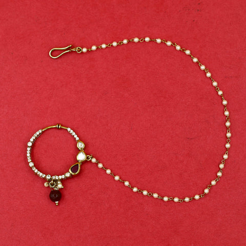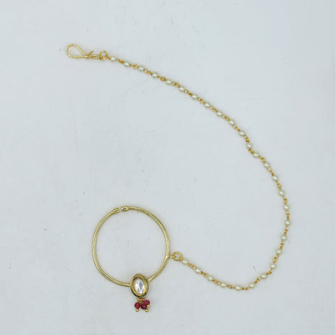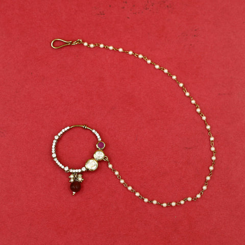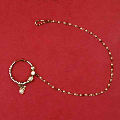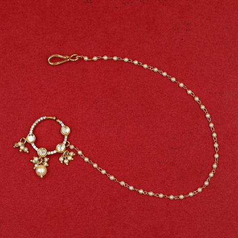 Stone - Kundan, Pearl Suitable for - Non Peireced NoseBase - Silver & Copper Alloy