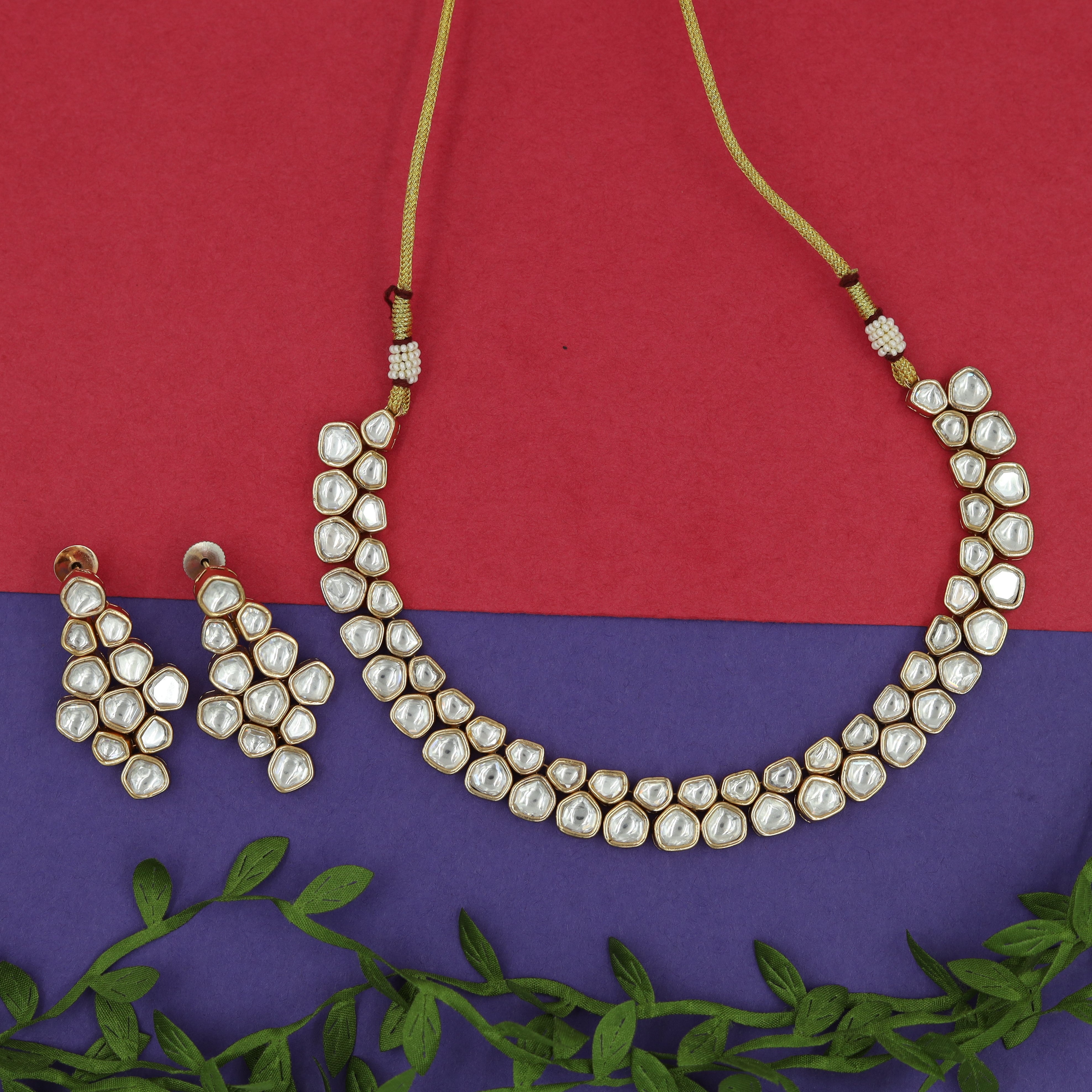 Set Contains - 1 Necklace + 2 EarringsNecklace Closure - Silk DoriEarring Closure - Push BackBase - Silver & Copper Alloy