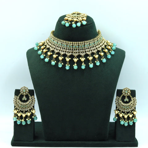 Set Contains - 1 Necklace + 2 EarringsEarring Closure - Push BackBase - Silver & Copper Alloy