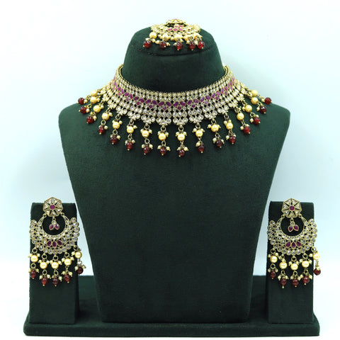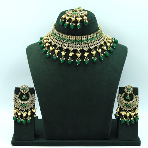 Set Contains - 1 Necklace + 2 Earrings+ 1 Maang TikkaNecklace Closure - Silk DoriEarring Closure - Push BackBase - Silver & Copper Alloy Earrings - Height - 6.7 CM , Width - 4.5 CM...
