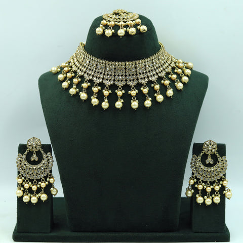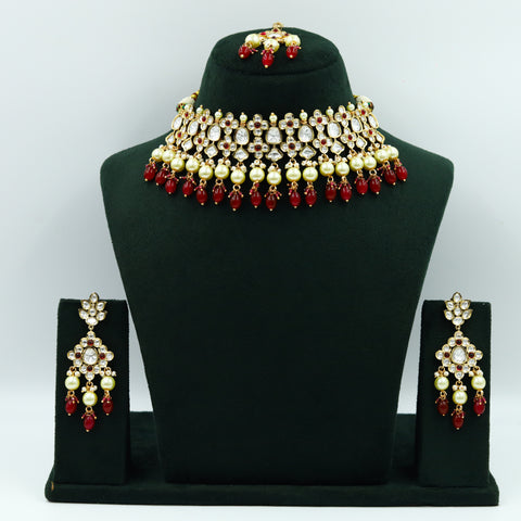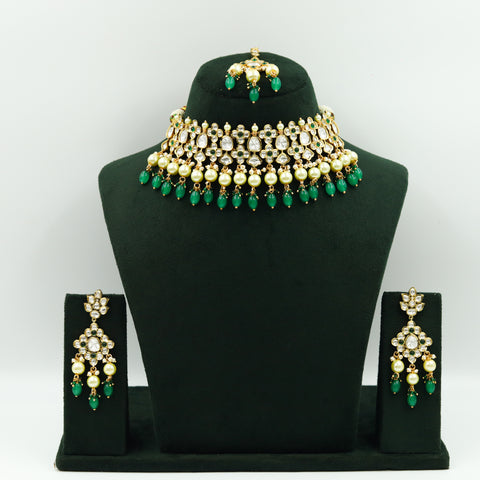 Set Contains - 1 Necklace + 2 Earrings+ 1 Maang TikkaNecklace Closure - Silk DoriEarring Closure - Push BackBase - Silver & Copper Alloy Earring Height - 7.5 CM , Width - 4 CM Earring...