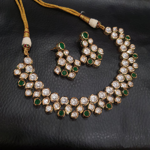 Set Contains - 1 Necklace + 2 Earrings + 1 Mang TikaEarring Closure - Push BackNecklace Closure - Silk DoriBase - Silver & Copper Alloy
