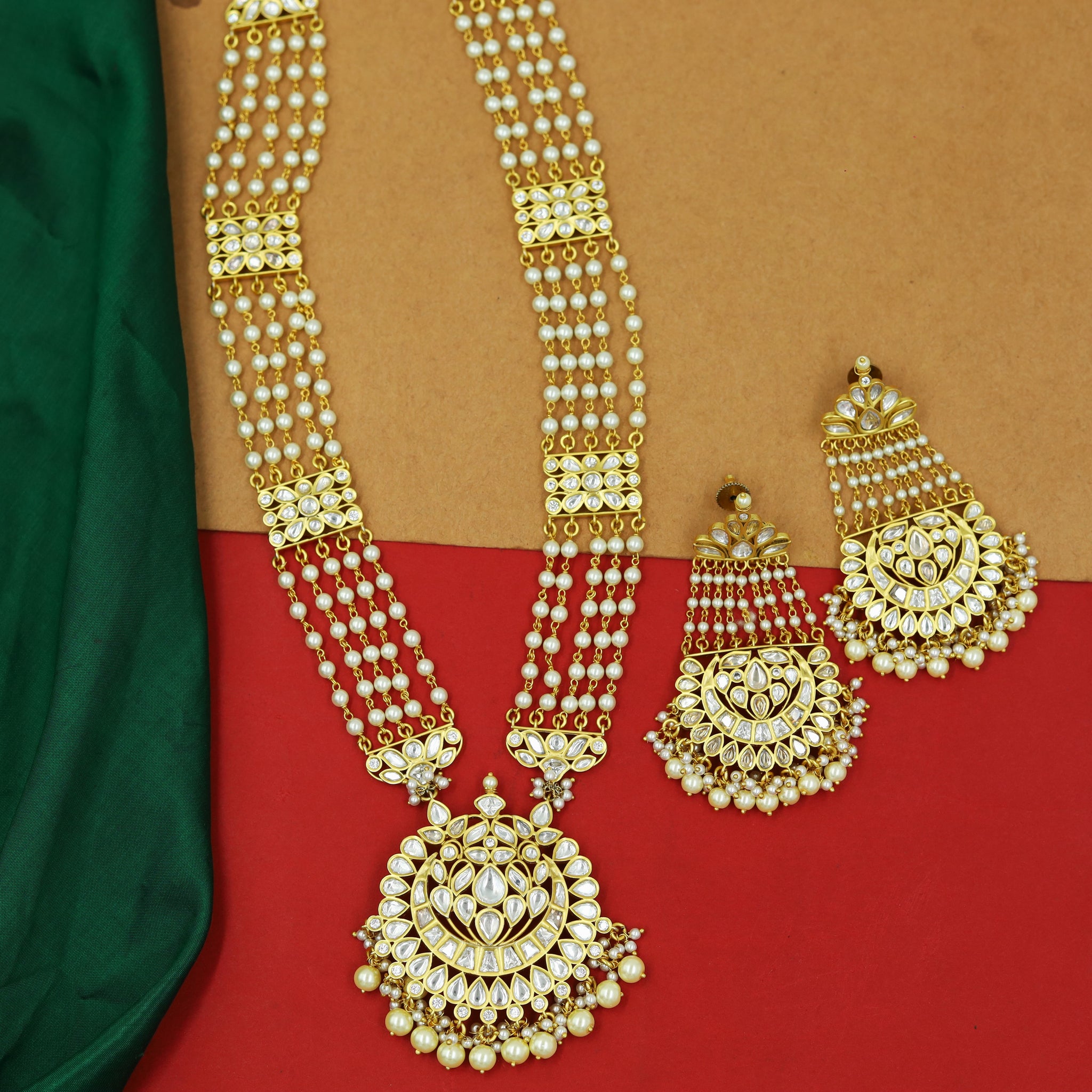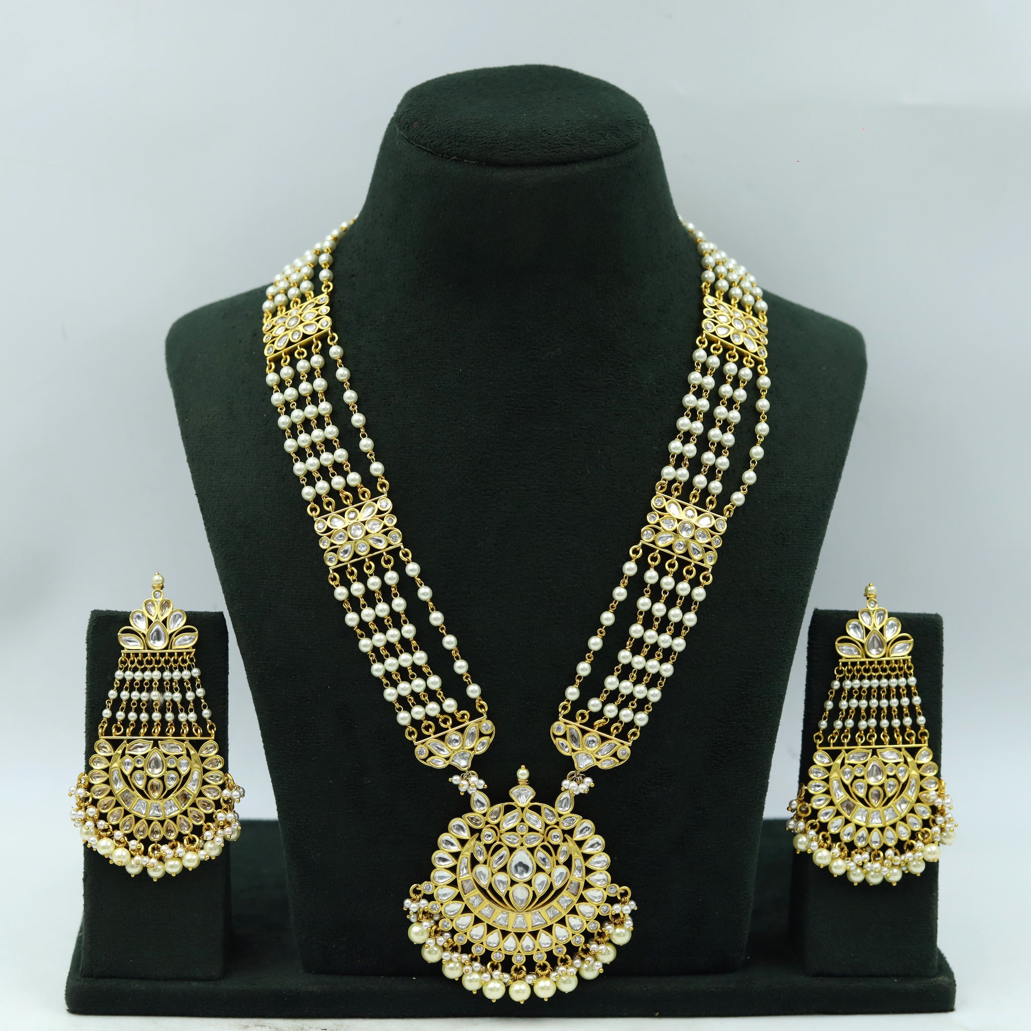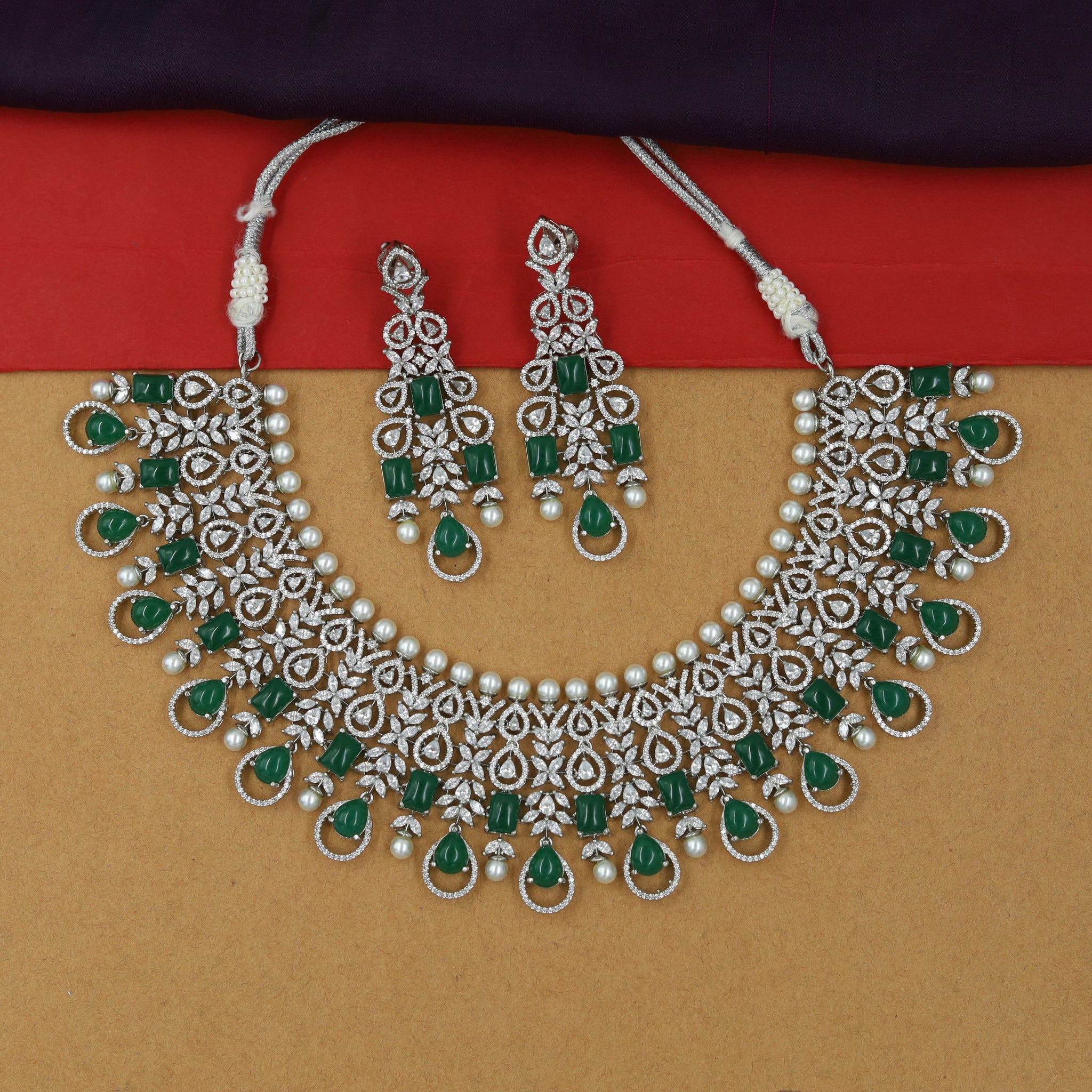 Base - Silver & Copper AlloySet Contains - 1 Necklace + 2 Earrings + 1 Maang Tikka Earring: Height- 7.5 cm , Width- 3.5 cm Earring Weight - 45 gram ( 22.5 gm each earring)