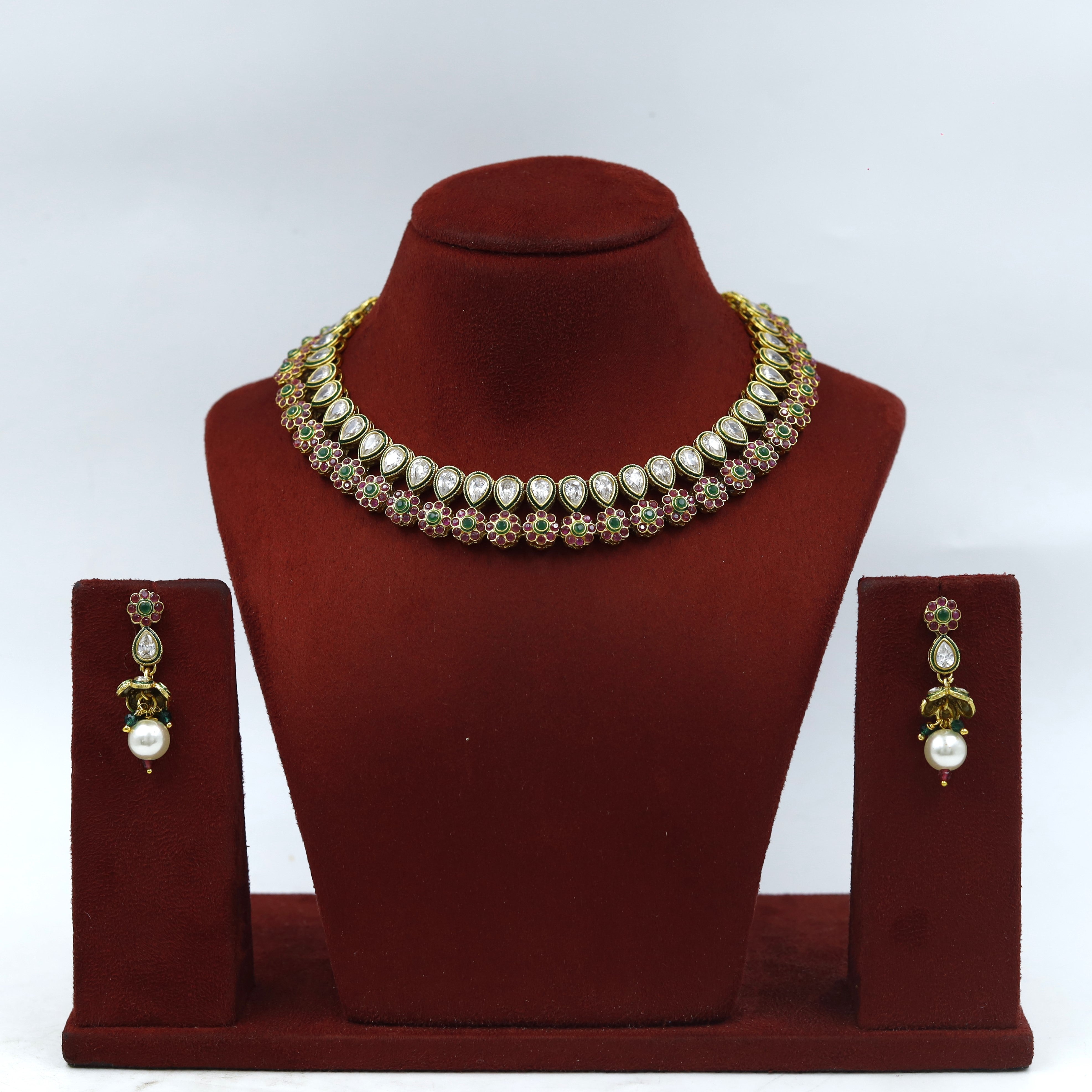 Base - Silver & Copper AlloySet Contains - 1 Necklace + 2 EarringsNecklace Closure - Silk DoriEarring Closure - Push Back