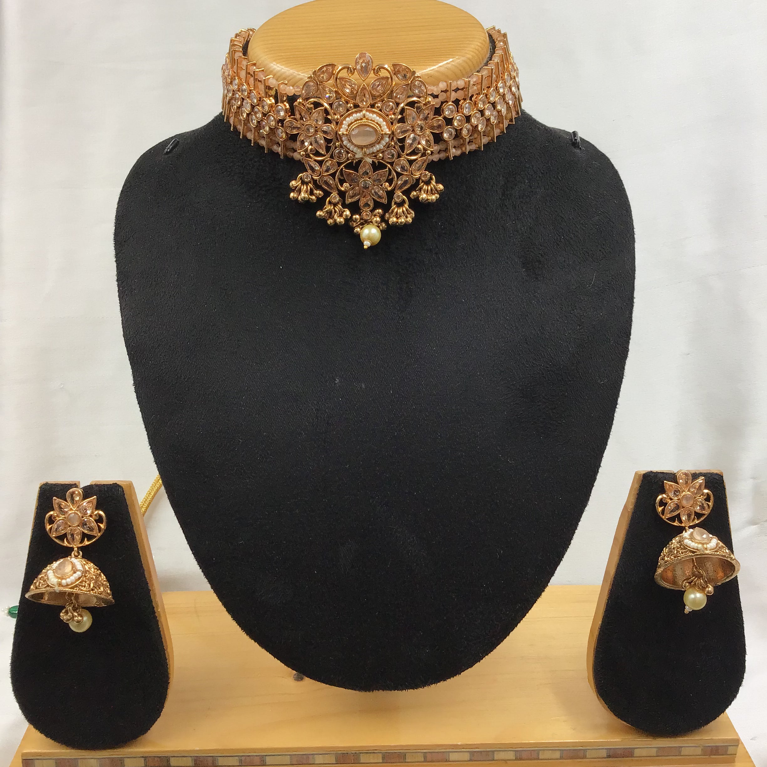 The choker is lightweight, making it comfortable to wear for long hours, without causing any discomfort. The delicate jhumki that comes with this choker adds a touch of traditional charm to your entire look.