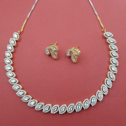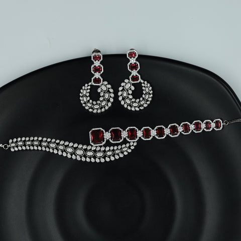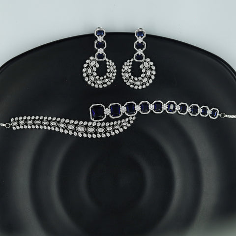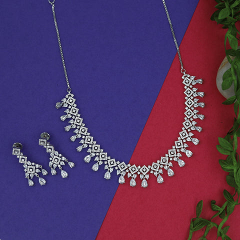 Base - Silver & Copper AlloyPack Contains - 1 Necklace + 2 EarringsNecklace Closure - Metal Clasp Earring: Height- 4.6 cm , Width- 0.3 cm Earring Weight - 4 gram (2 gm each earring)